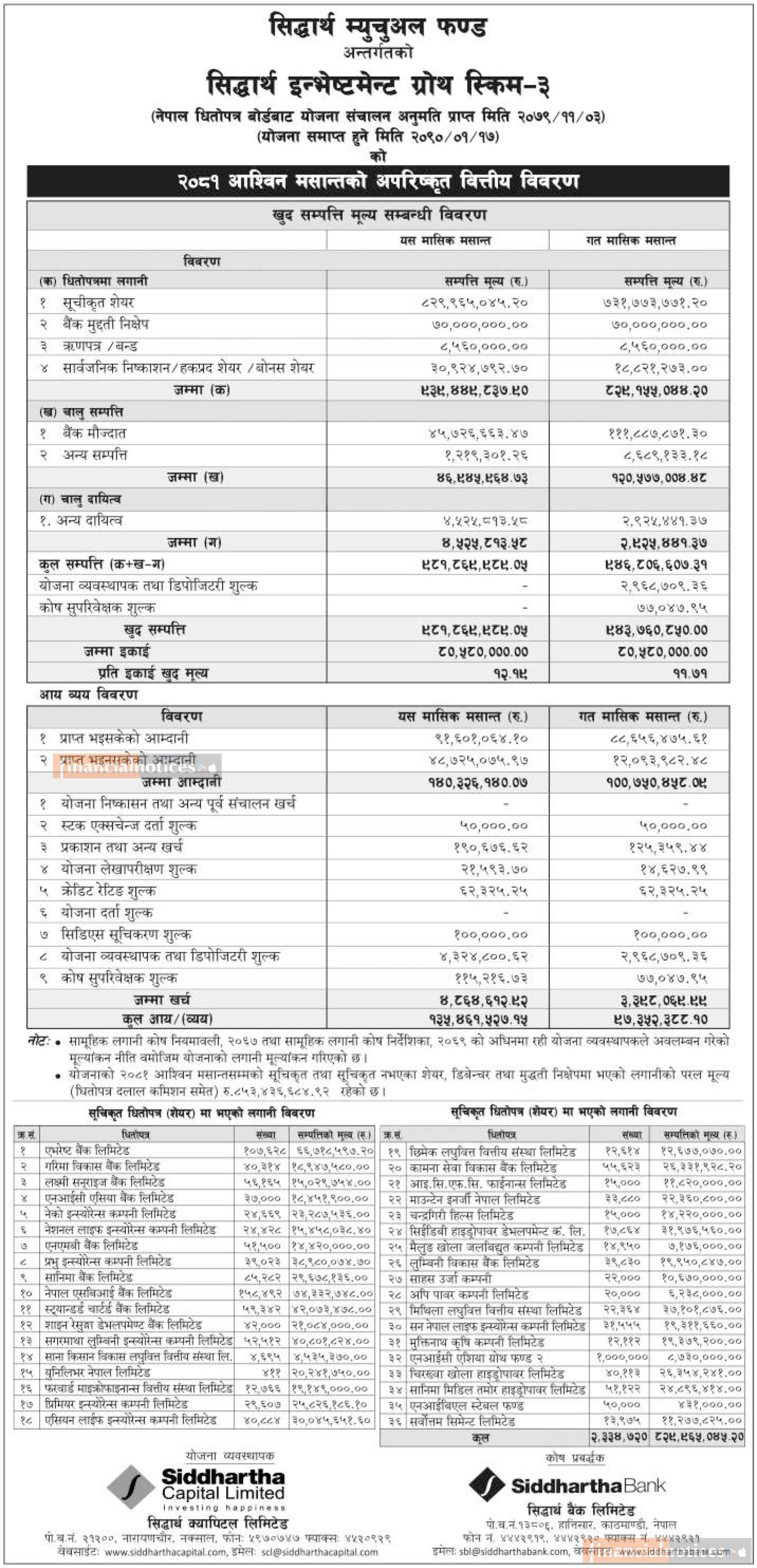 Siddhartha Capital published NAV for "Siddhartha Investment Growth Scheme -3 " till Ashwin 2081