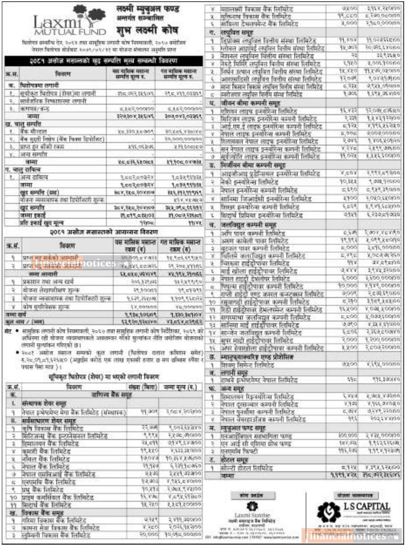 LS Capital has published the “Shuva Laxmi Kosh” Net Asset Value till Ashwin, 2081