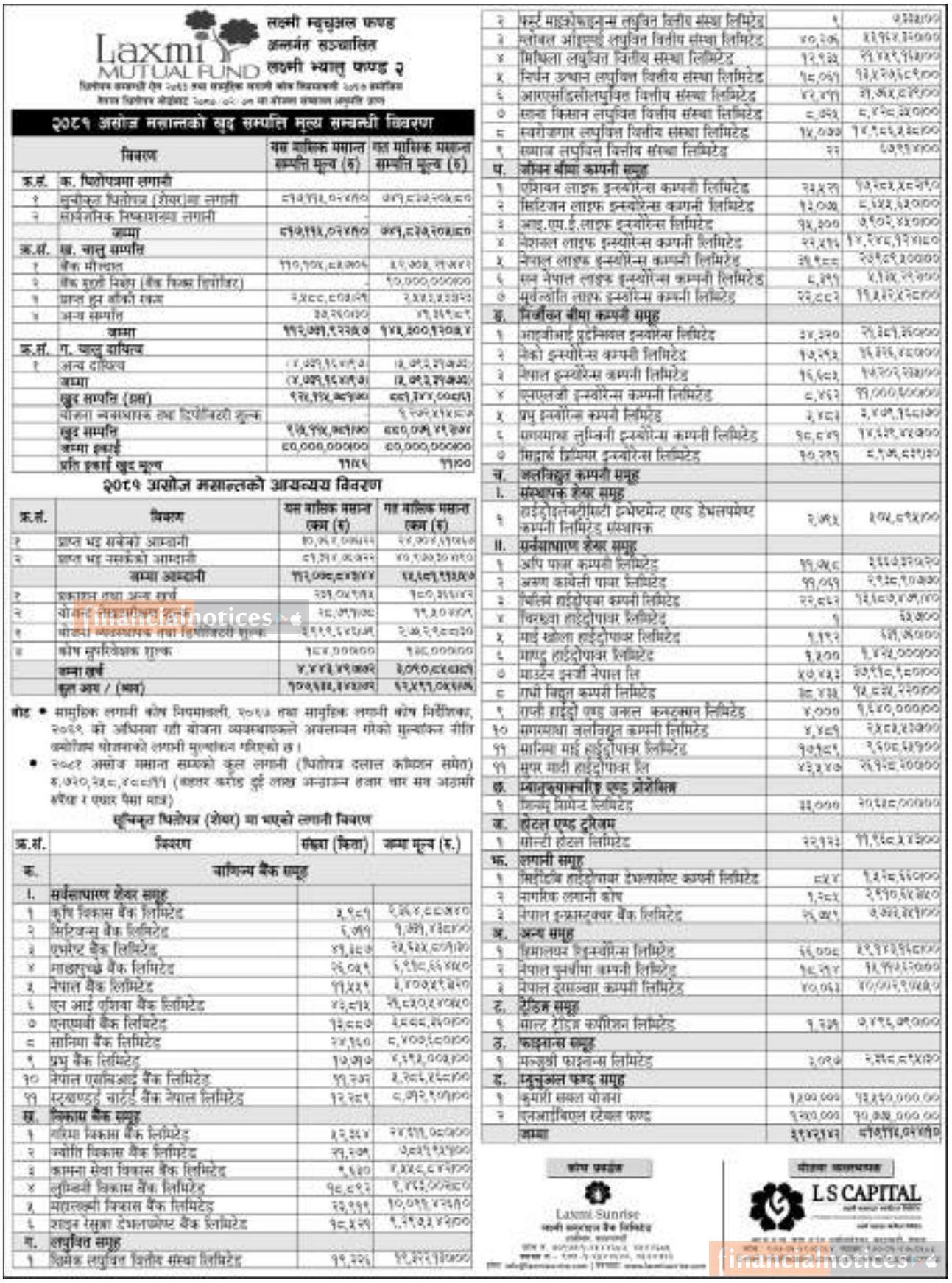 LS Capital has published the “Laxmi Value Fund 2” Net Asset Value till Ashwin, 2081