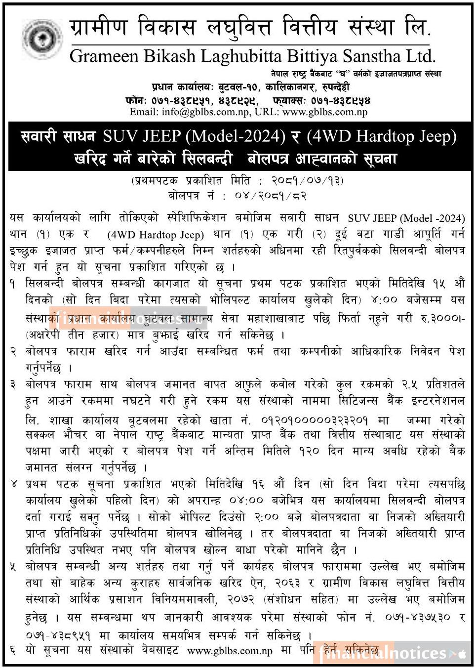 सवारी साधन खरिद गर्ने बारे शिलबन्दी बोलपत्र आव्हानको सूचना