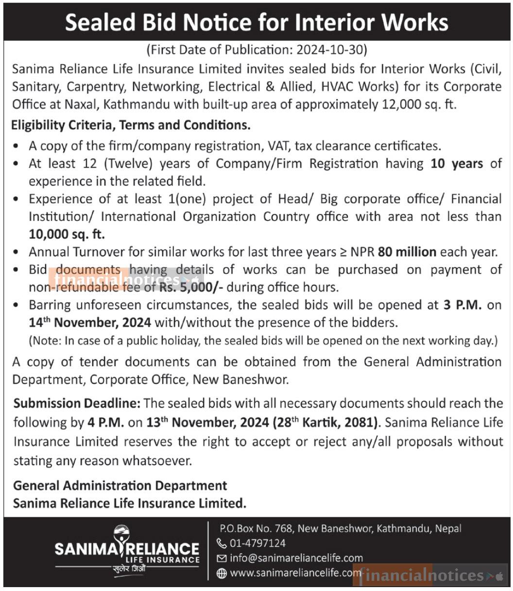 Sealed Bid Notice for Interior Works