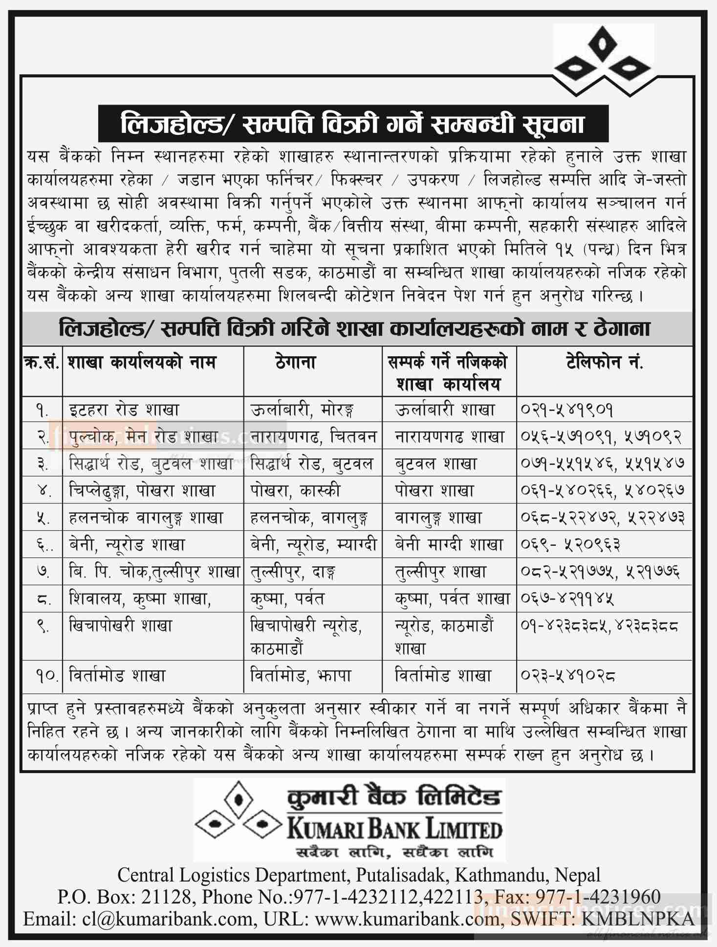 Published by Kumari Bank Ltd (KBL) Kantipur Newspaper on 2074-11-02