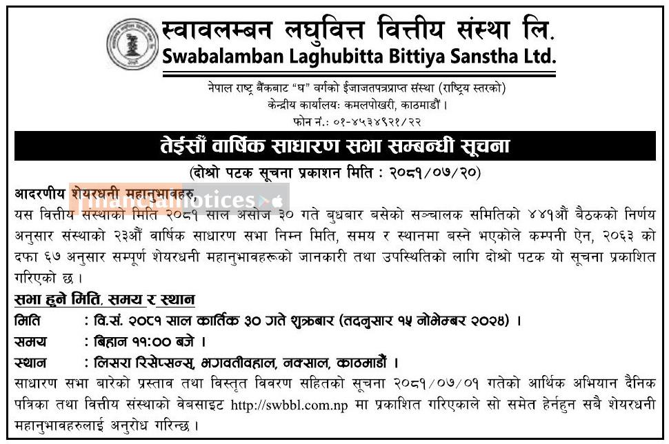 २३ औँ वार्षिक साधारण सभा सम्बन्धी सूचना -