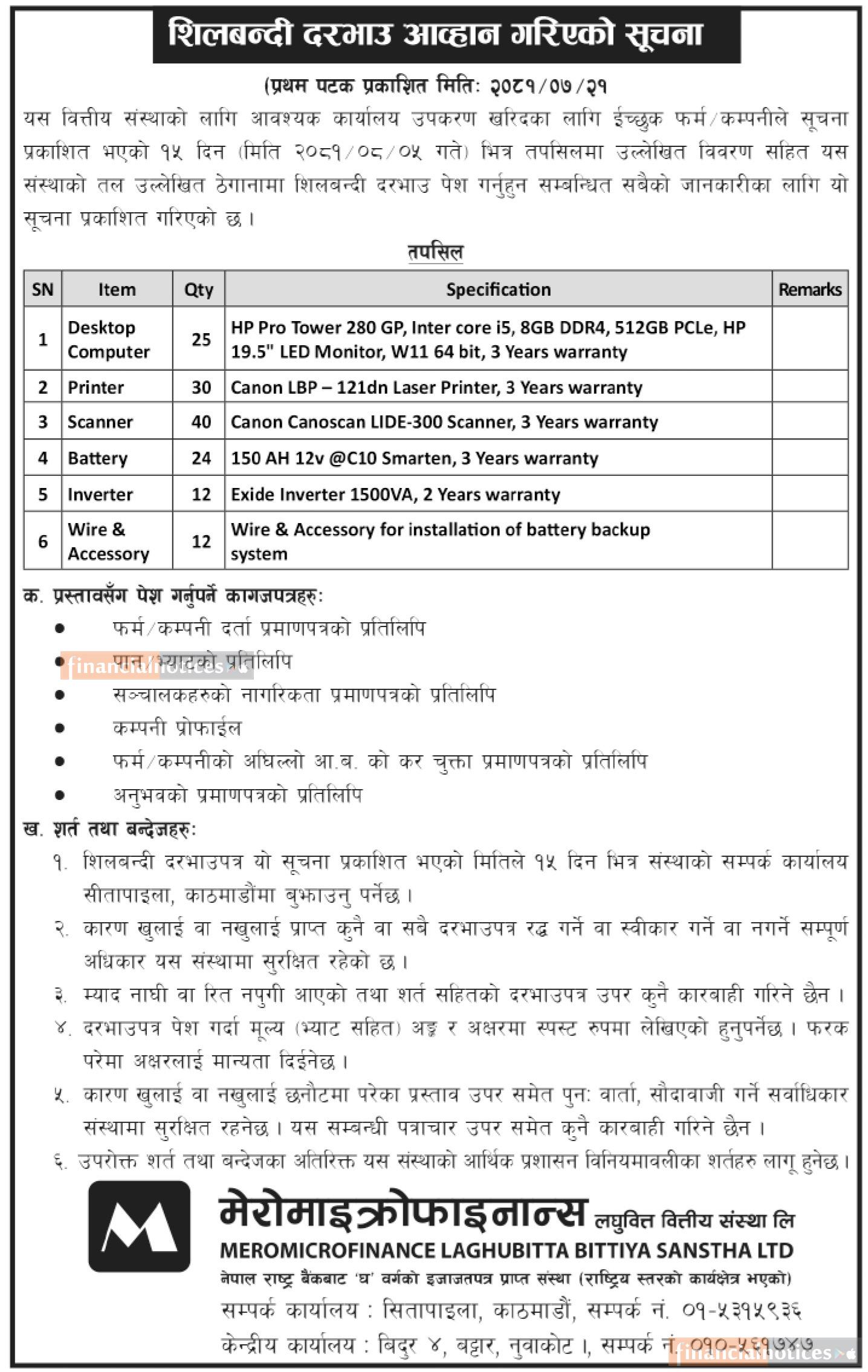 शिलबन्दी दरभाउपत्र आव्हान गरिएको सूचना