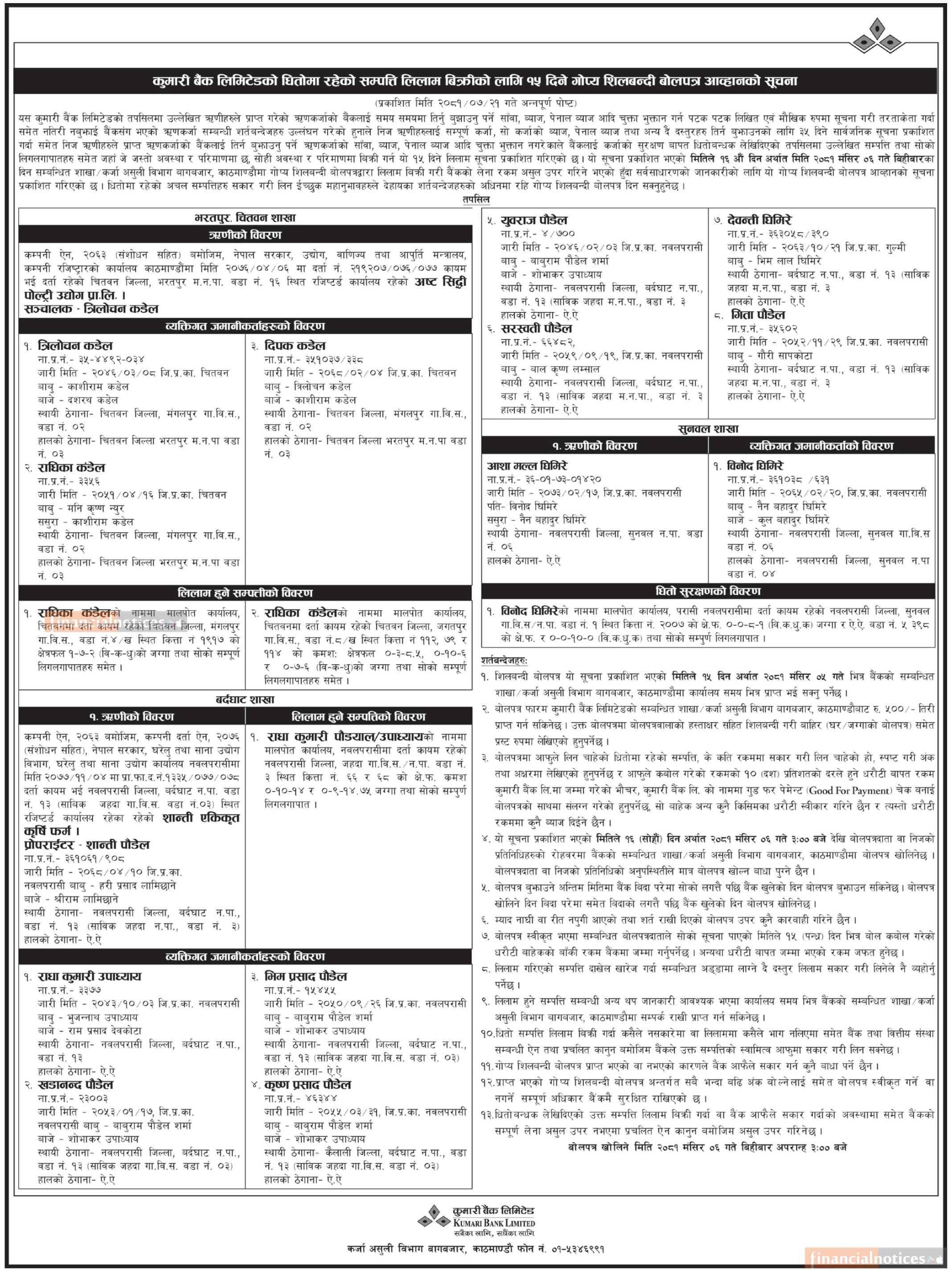 Published by Kumari Bank Ltd (KBL) on 2081-7-21