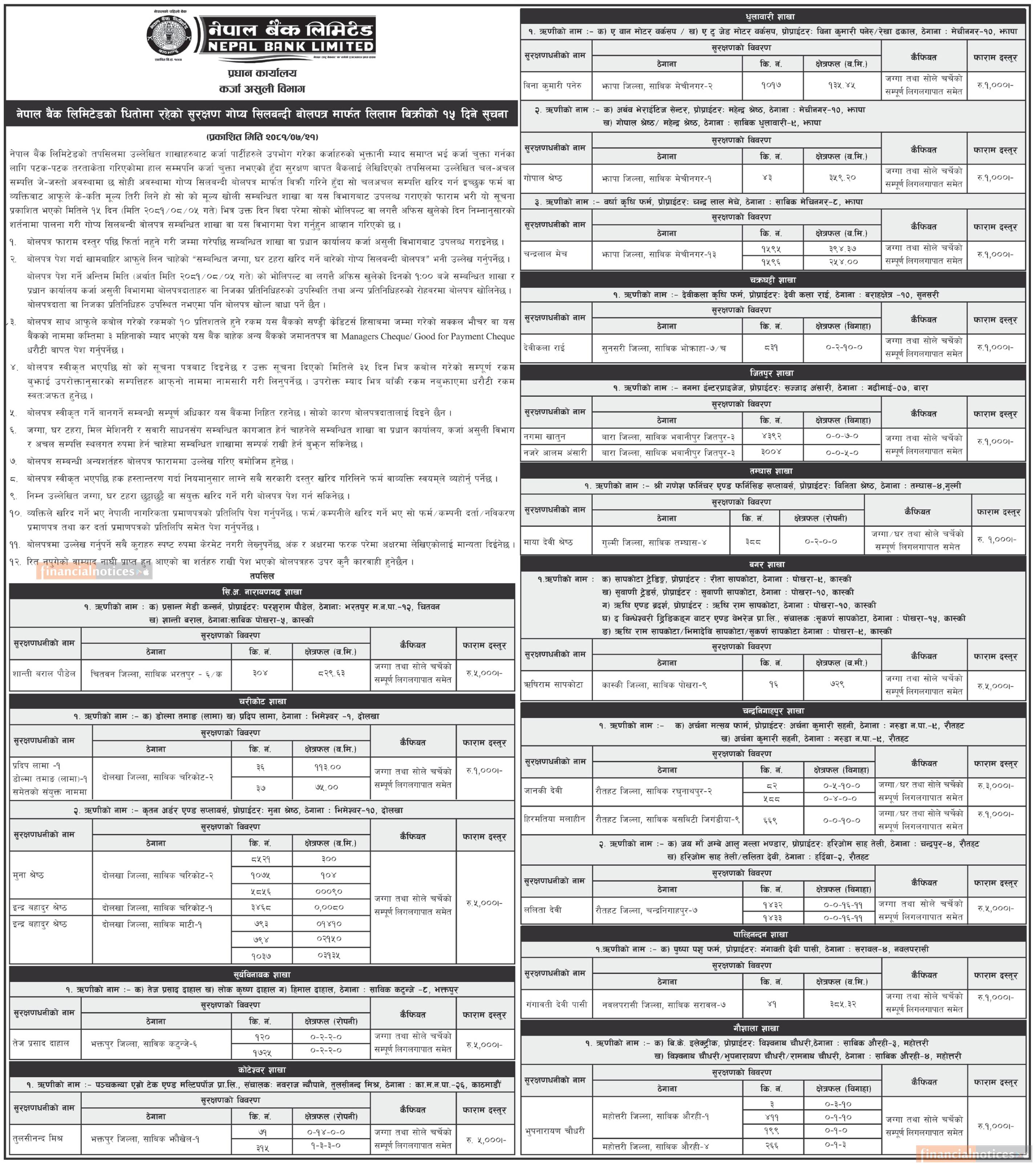 नेपाल बैंकको धितोमा रहेको सुरक्षण गोप्य शिलबन्दी बोलपत्र मार्फत् लिलामी बिक्रीको १५ दिने सूचना