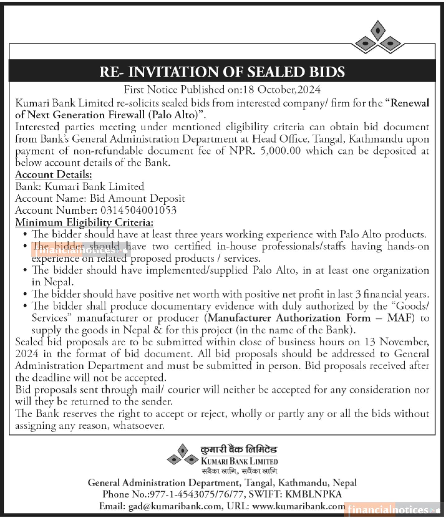 Published by Kumari Bank Ltd (KBL) on 2081-7-22
