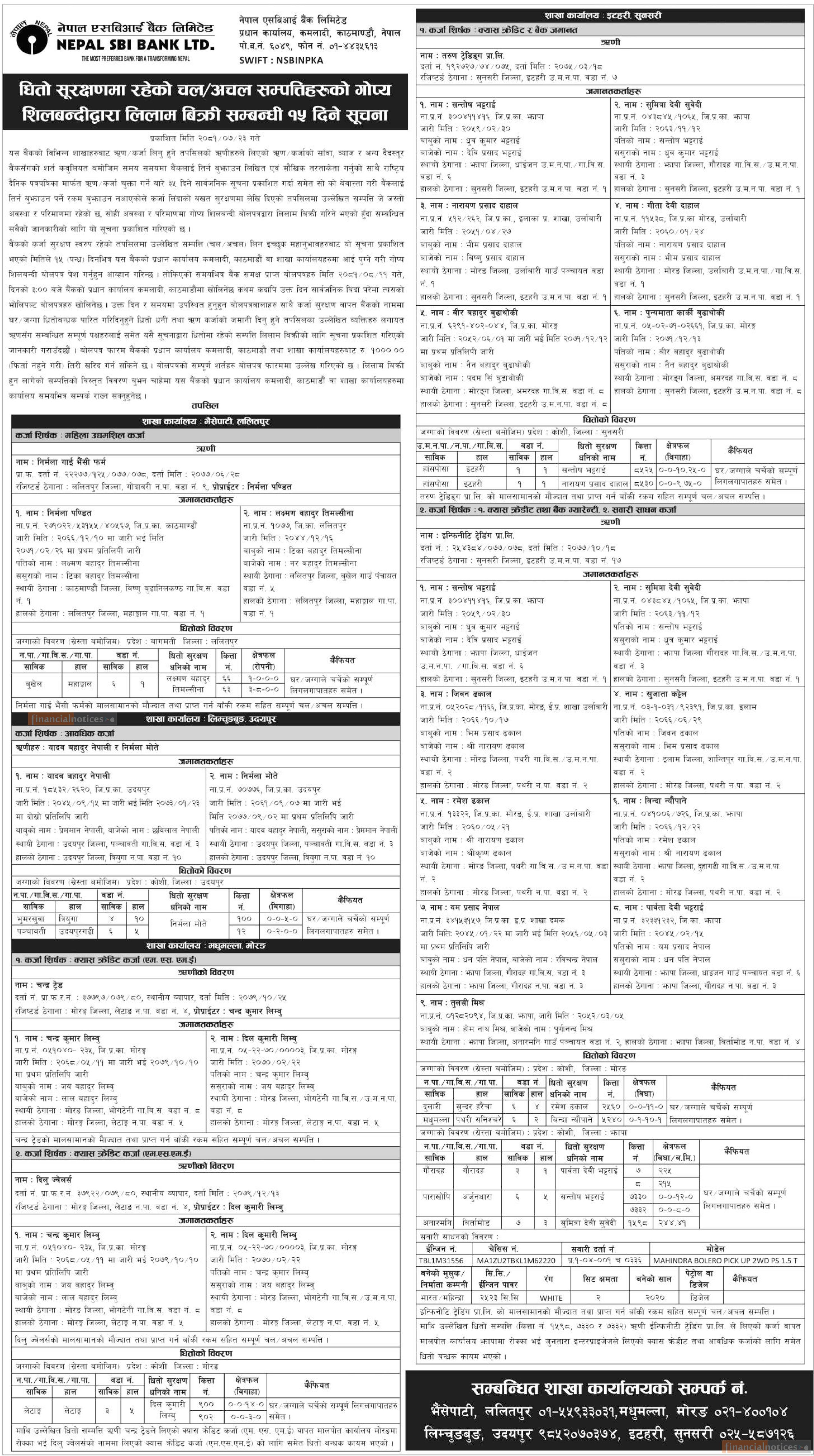 धितो सुरक्षणमा रहेको चलअचल सम्पत्तिहरुको गोप्य शिलबन्दी बोलपत्रद्धारा लिलाम बिक्रीको सूचना