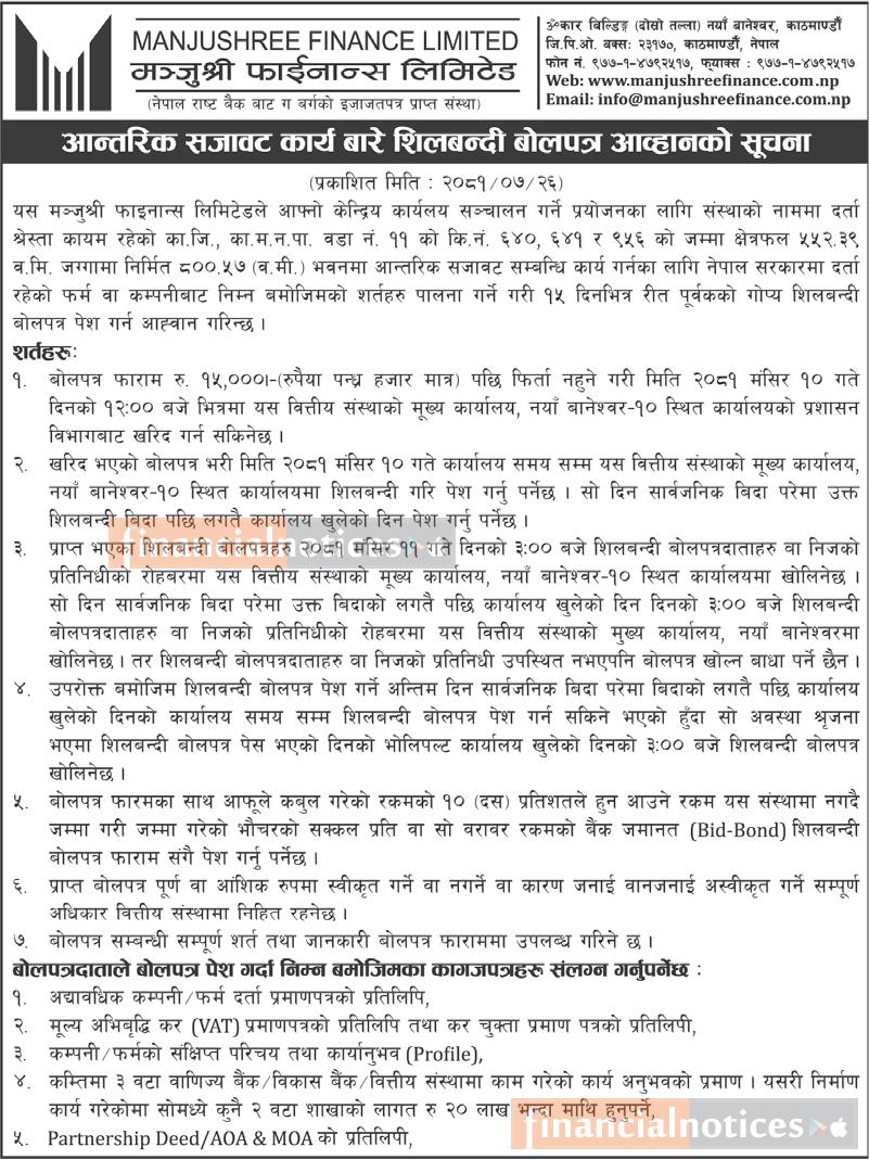 आन्तरि सजावट कार्यबारे शिलबन्दी बोलपत्र आव्हानको सूचना