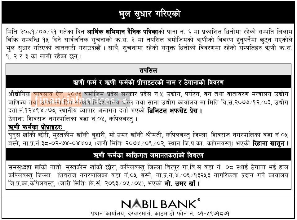 भुल सुधार गरिएको बारे सूचना