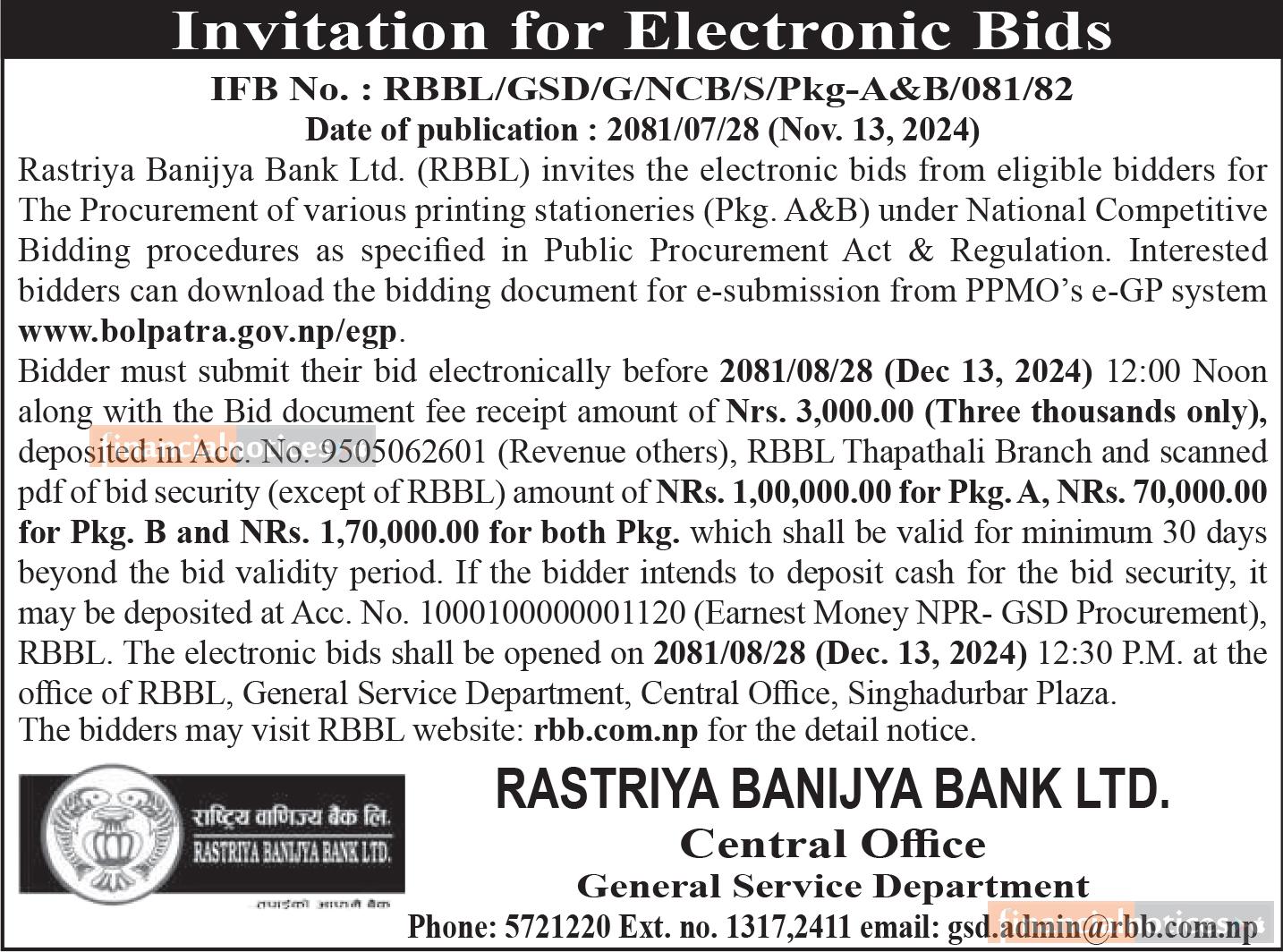 Invitation for Electronic Bids