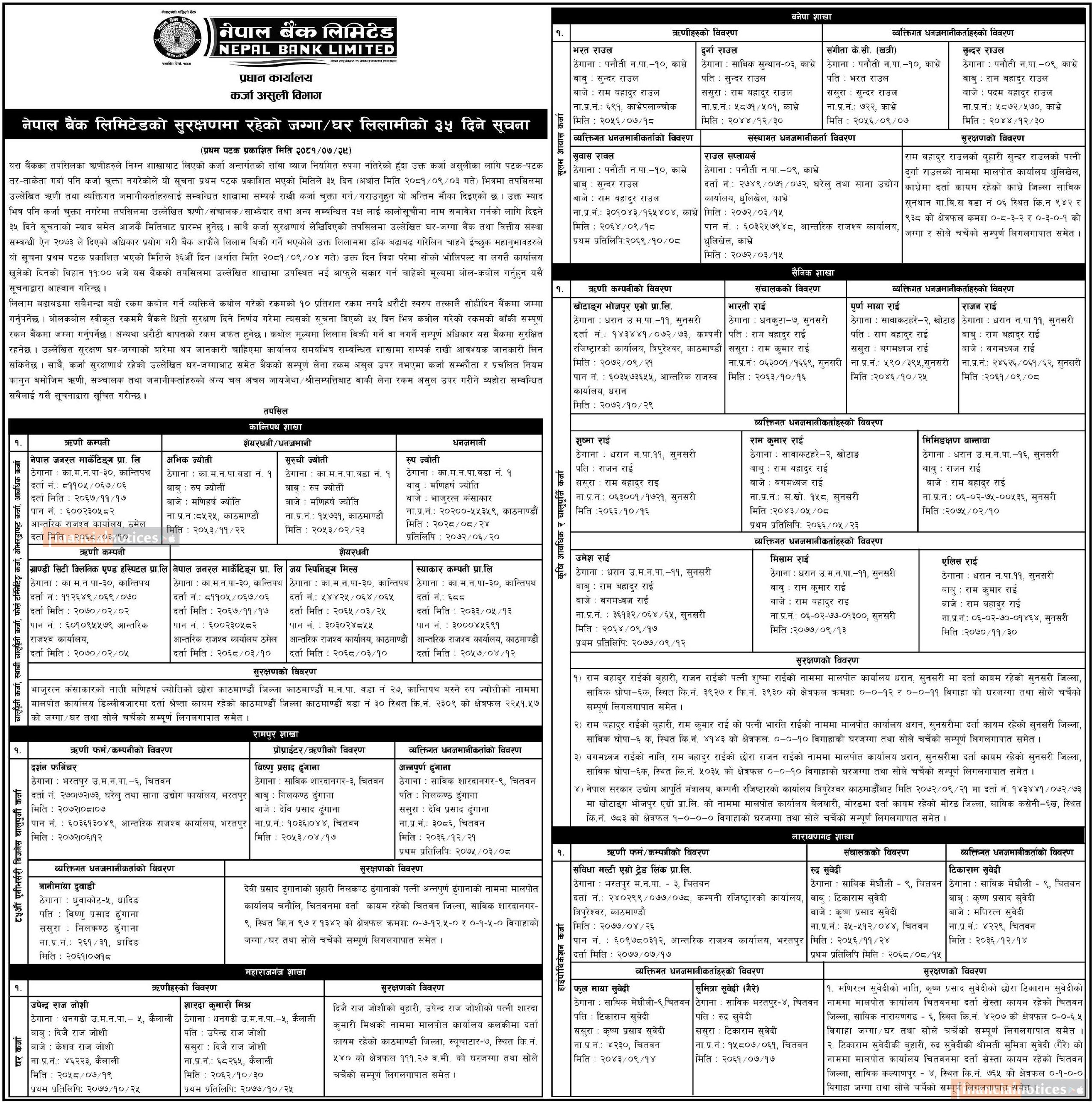 नेपाल बैंकको सुरक्षणमा रहेको घरजग्गा लिलामीको ३५ दिने सूचना