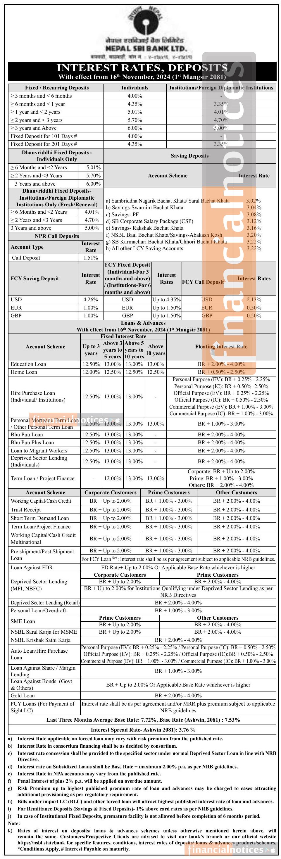 नेपाल एसबिआई बैंकको ब्याजदर परिवर्तन सम्बन्धी सूचना - Interest Rate Notice -