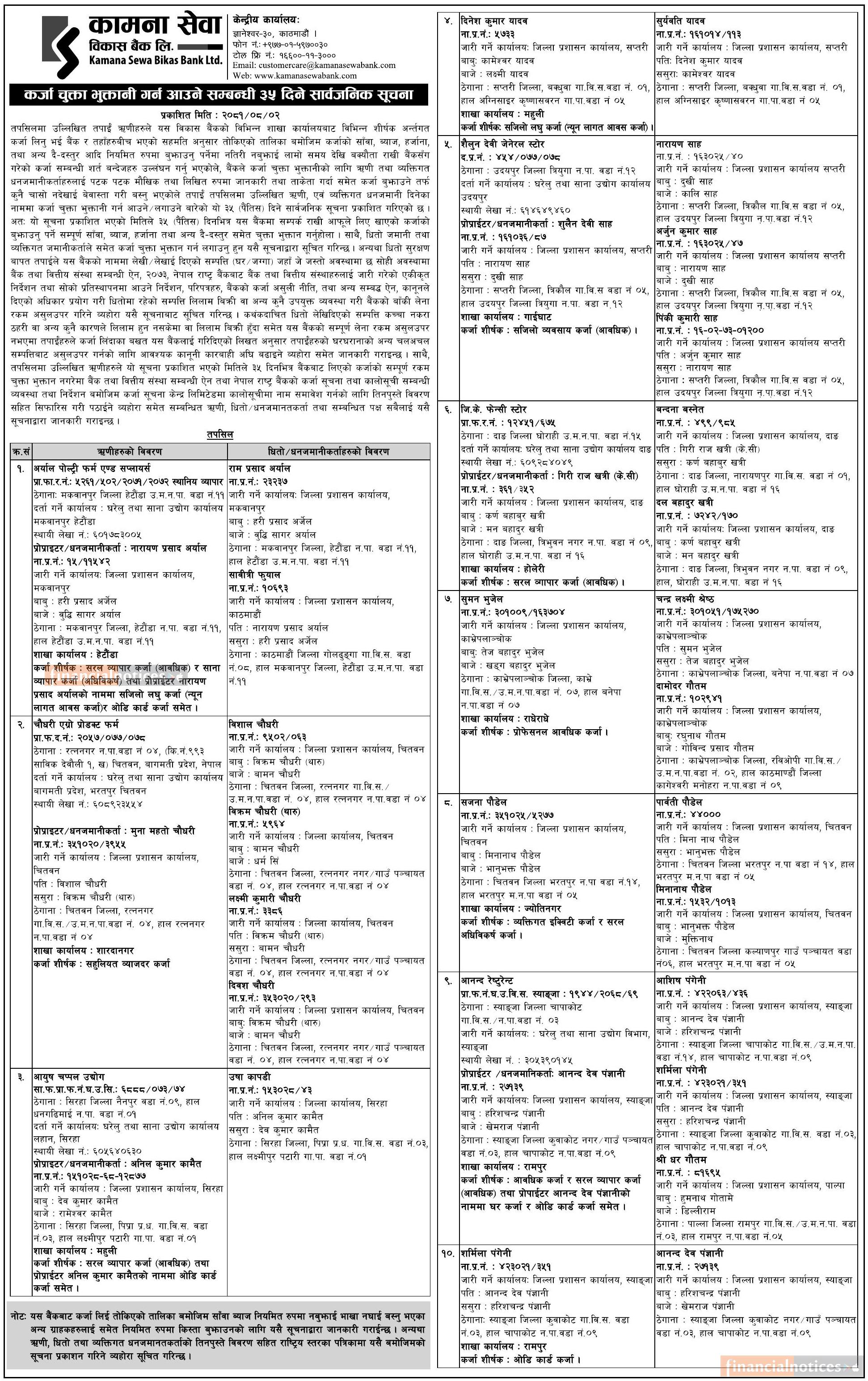 कर्जा चुक्ता भुक्तानी गर्न आउने सम्बन्धी ३५ दिने सूचना