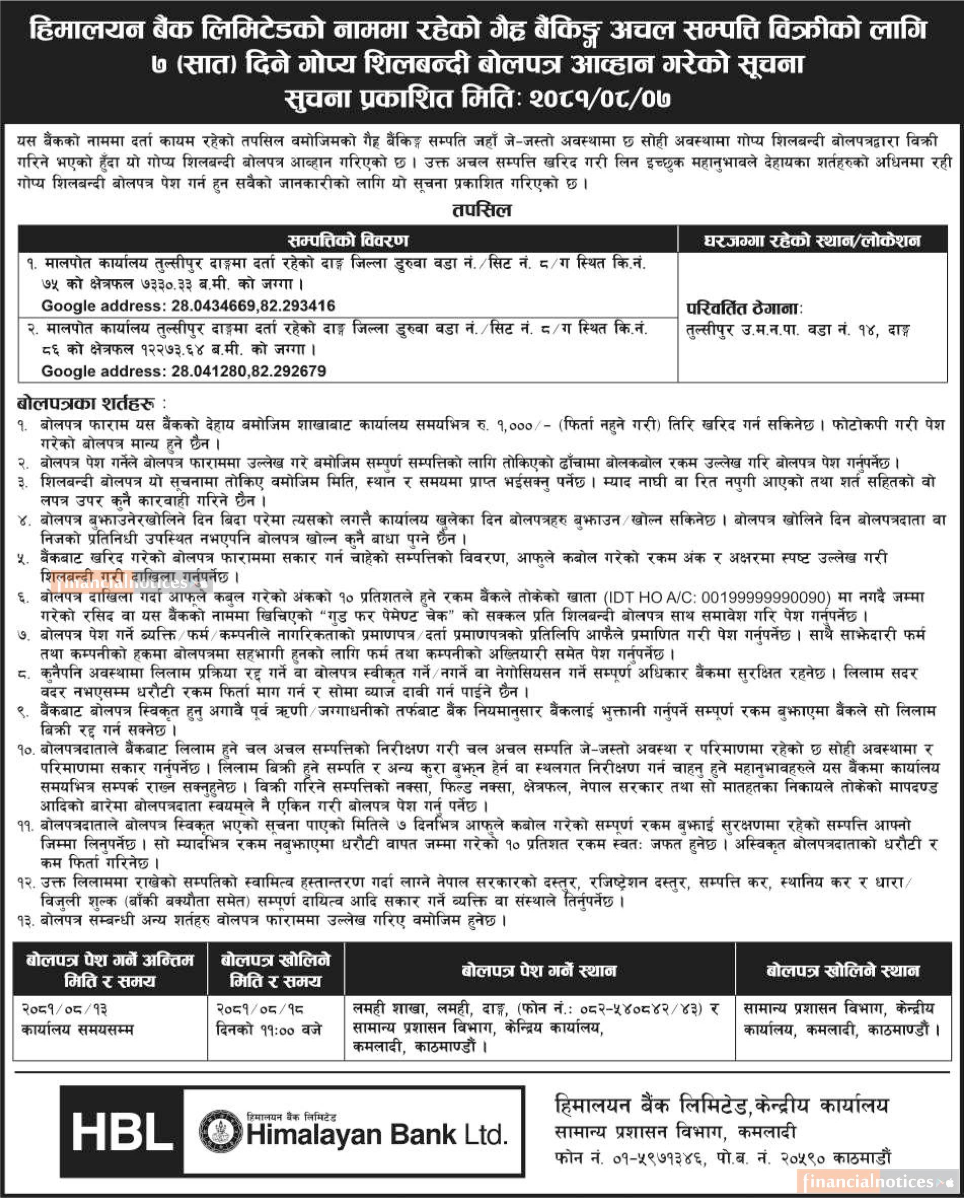 Published by Himalayan Bank Ltd on 2081-8-7