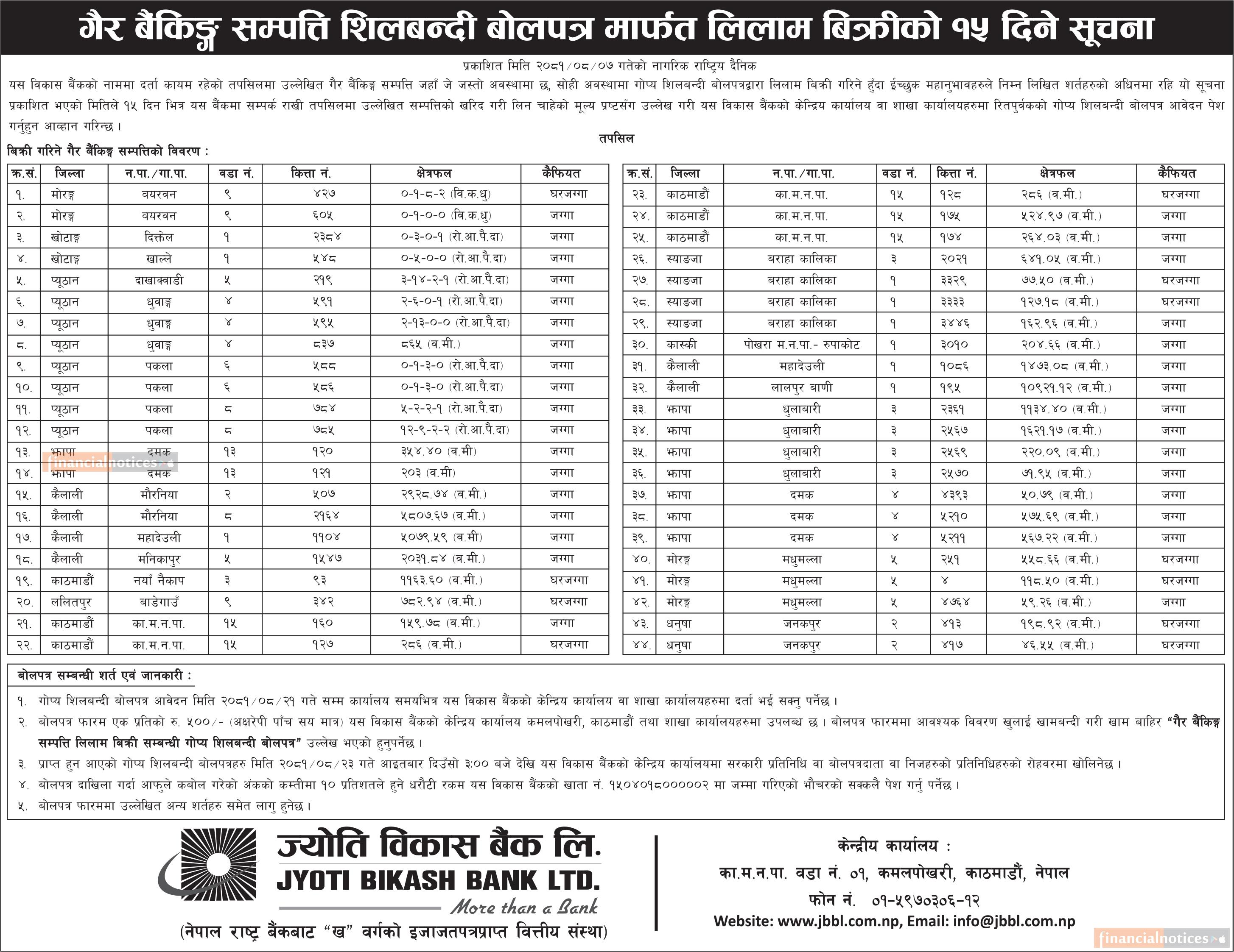 गैह्र बैंकिङ्ग सम्पत्ति शिलबन्दी बोलपत्र मार्फत लिलाम बिक्रीको सूचना
