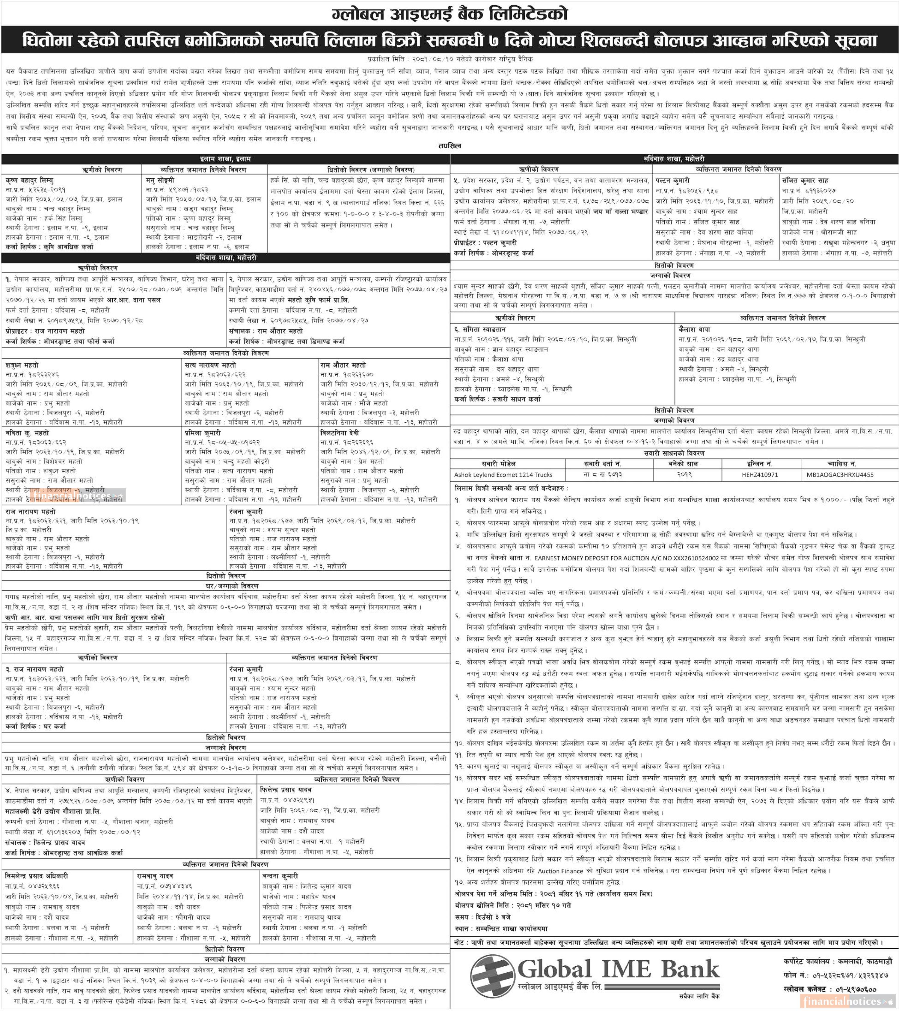 सम्पत्ति लिलाम बिक्री सम्बन्धी ७ दिने गोप्य शिलबन्दी बोलपत्र आव्हानको सूचना