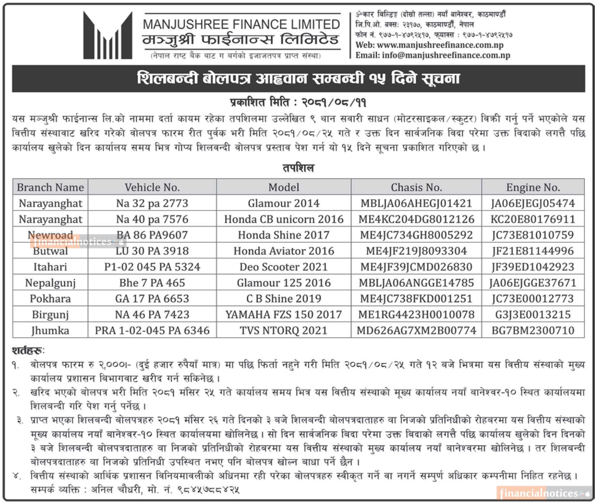 शिलबन्दी बोलपत्र आव्हान सम्बन्धी १५ दिने सूचना