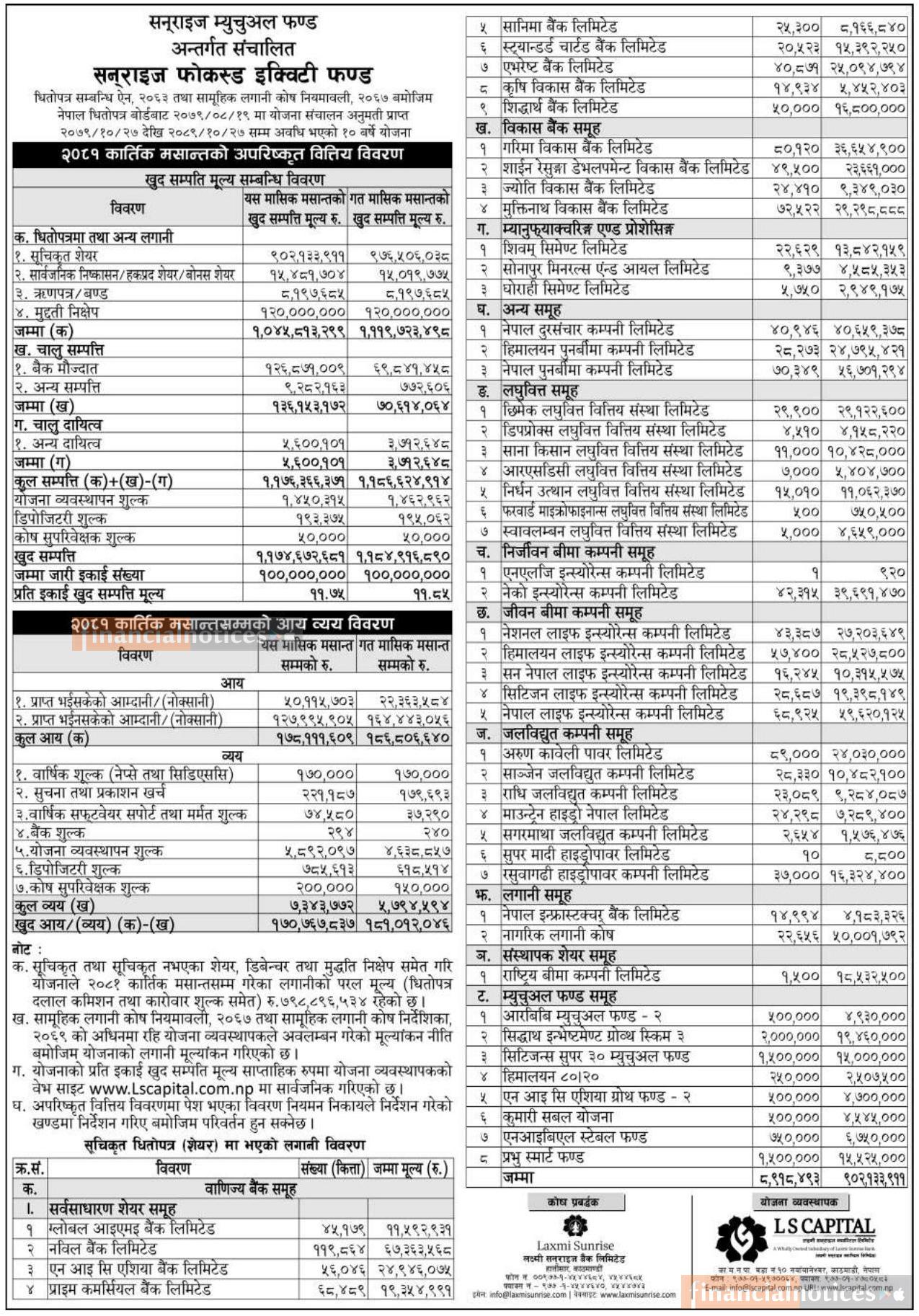 LS Capital has published "Sunrise Focused Equity Fund" Net Assets Value till Kartik, 2081