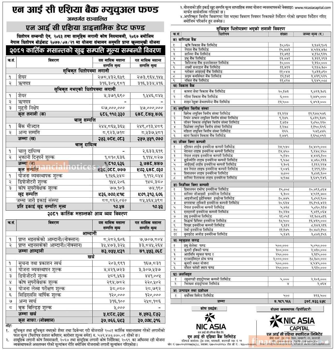 NIC Asia Capital has published "NIC Asia Dynamic Debt Fund" Net Assets Value till Kartik, 2081