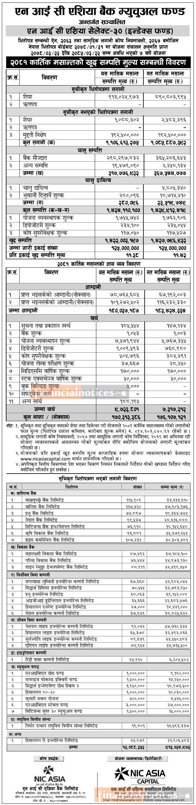 NIC Asia Capital has published "NIC Asia Select-30" Net Assets Value till Kartik, 2081