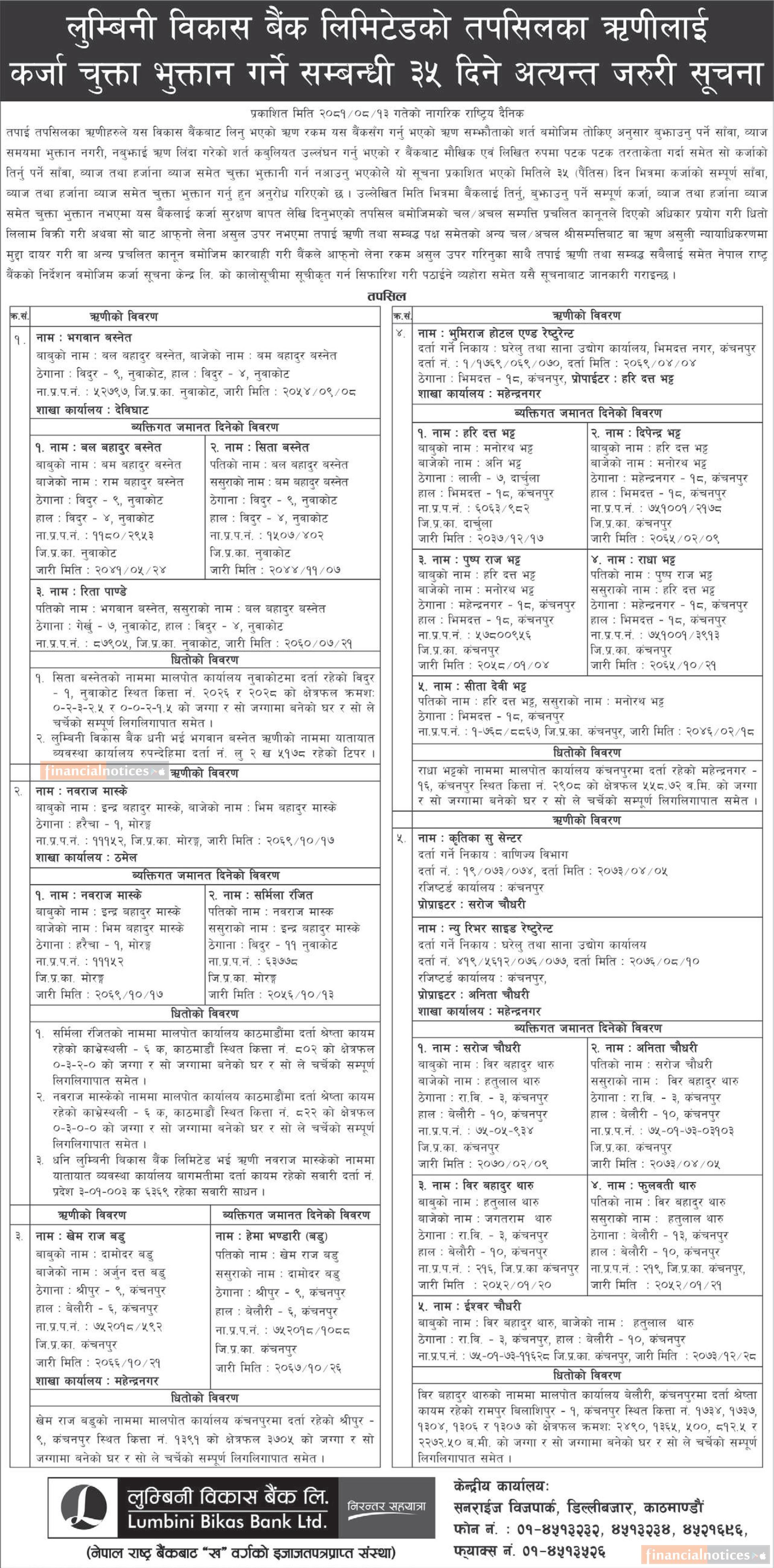 तपसिलका ऋणीहरुलाई कर्जा चुक्ता भुक्तान गर्ने सम्बन्धी ३५ दिने अत्यन्त जरुरी सूचना