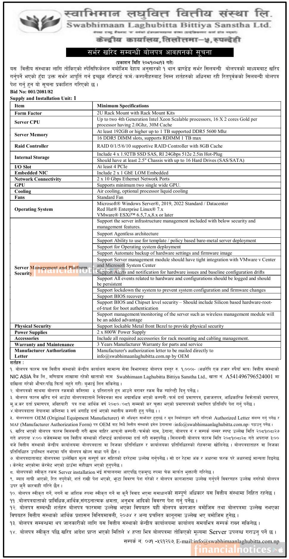 सर्भर खरिद सम्बन्धी बोलपत्र आव्हानको सूचना