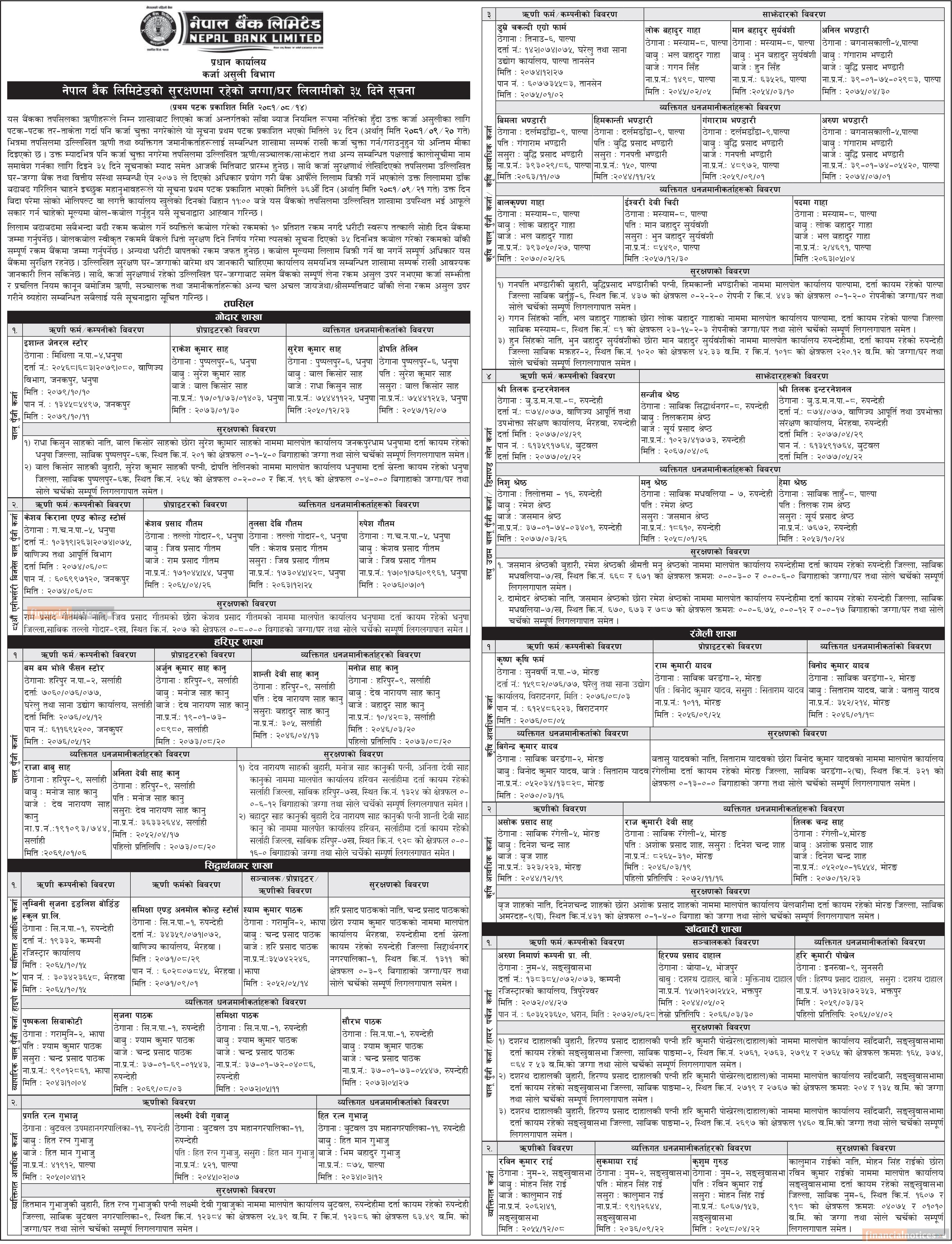 नेपाल बैंकको सुरक्षणमा रहेको घरजग्गा लिलामीको ३५ दिने सूचना