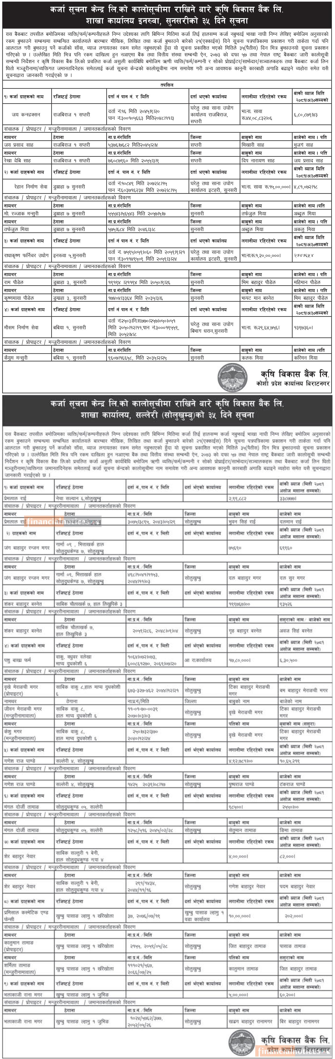 कालोसूचीमा राखिने बारे कृषि विकास बैंकको जरुरी सूचना