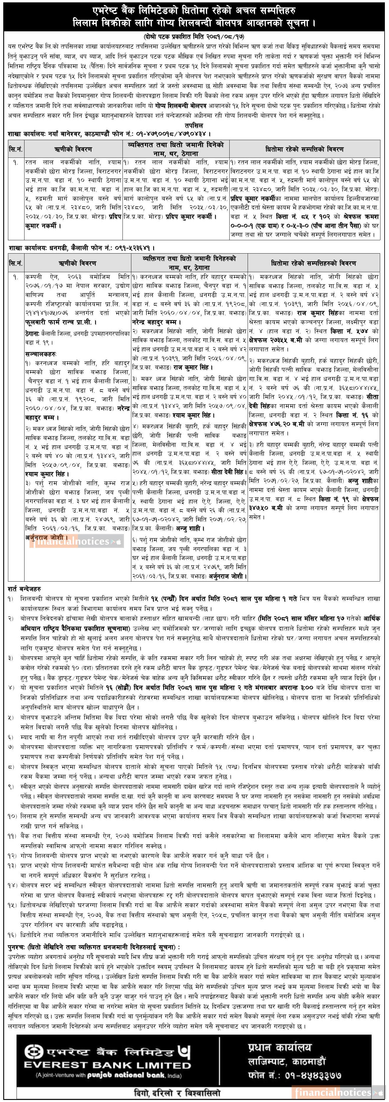 धितोमा रहेको चलअचल सम्पत्तिहरु लिलाम बिक्रीको लागि शिलबन्दी बोलपत्र आव्हानको सूचना