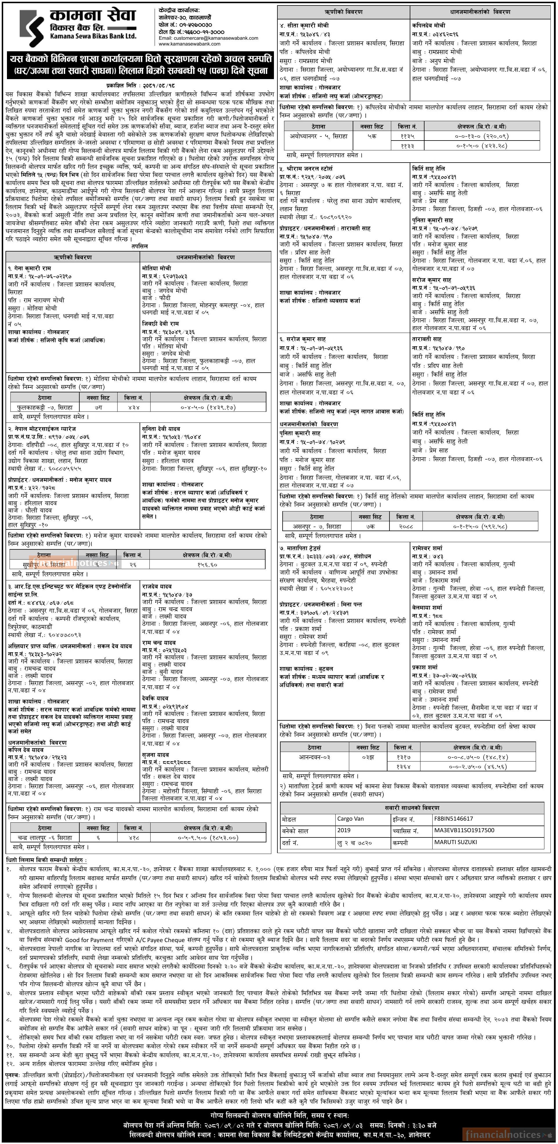 बैंकको धितो सुरक्षणमा रहेको घर जग्गा तथा सवारी साधन लिलाम बिक्रीको सूचना