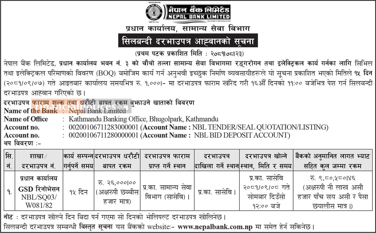 शिलबन्दी दरभाउपत्र आव्हानको सूचना