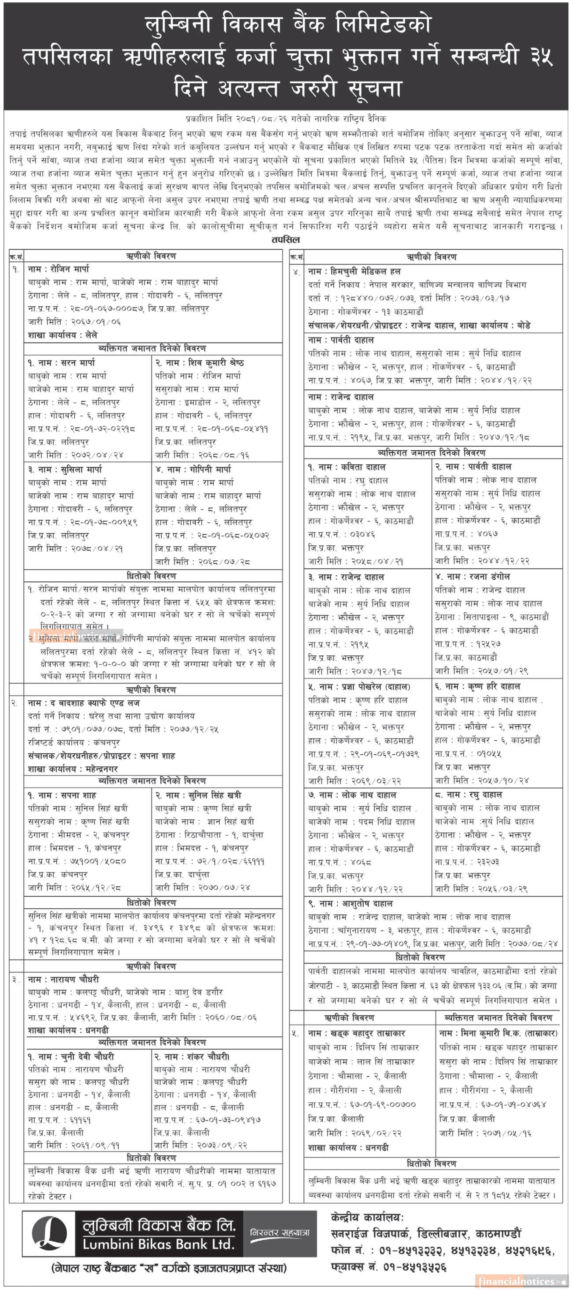 तपसिलका ऋणीहरुलाई कर्जा चुक्ता भुक्तान गर्ने सम्बन्धी ३५ दिने अत्यन्त जरुरी सूचना