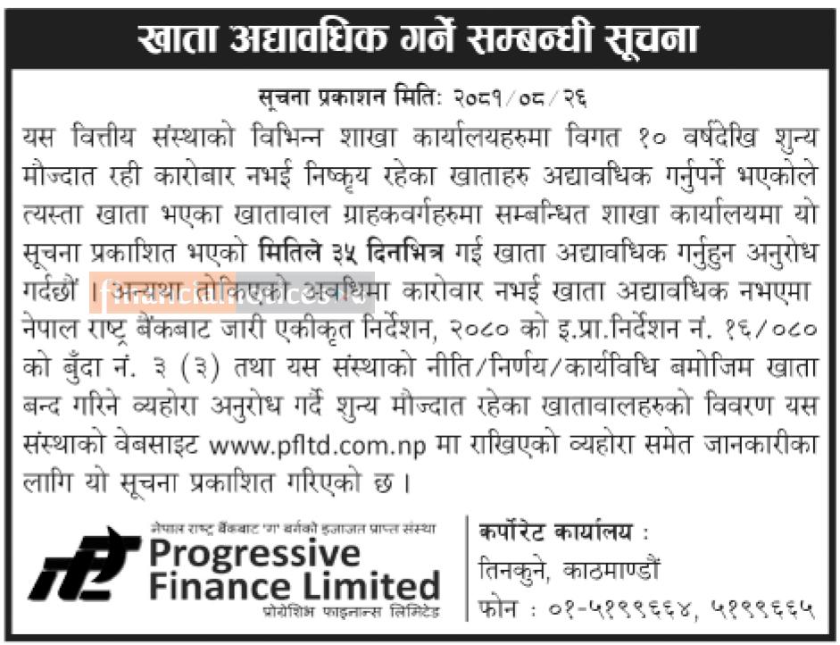 प्रोग्रशिभ फाइनान्सको खाता अद्यावधिक गर्ने सम्बन्धी सूचना