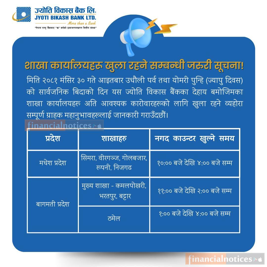 शाखा कार्यालयहरू खुला रहने सम्बन्धी जरुरी सूचना।