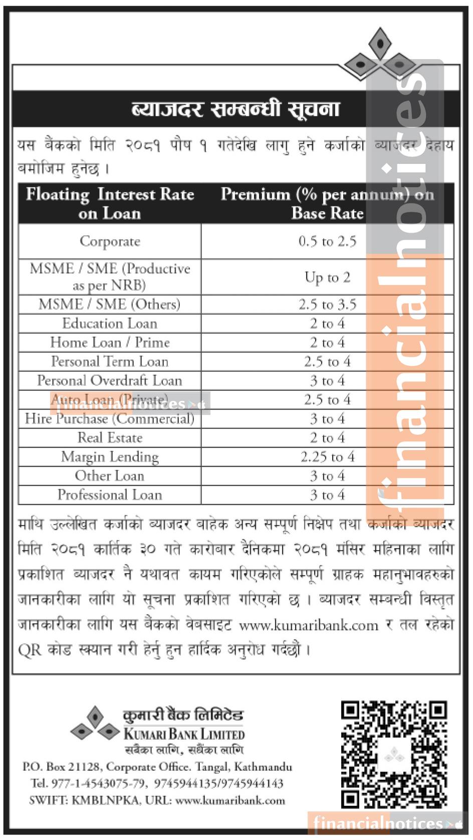 Published by Kumari Bank Ltd (KBL) on 2081-8-30