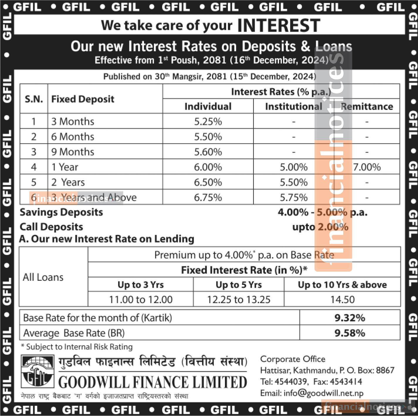 New Interest Rates on Depost and Loans of Goodwill Finance