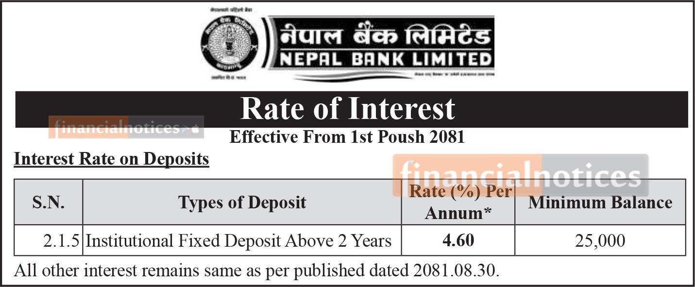नेपाल बैंकको ब्याजदर संसोधन सम्बन्धी सूचना