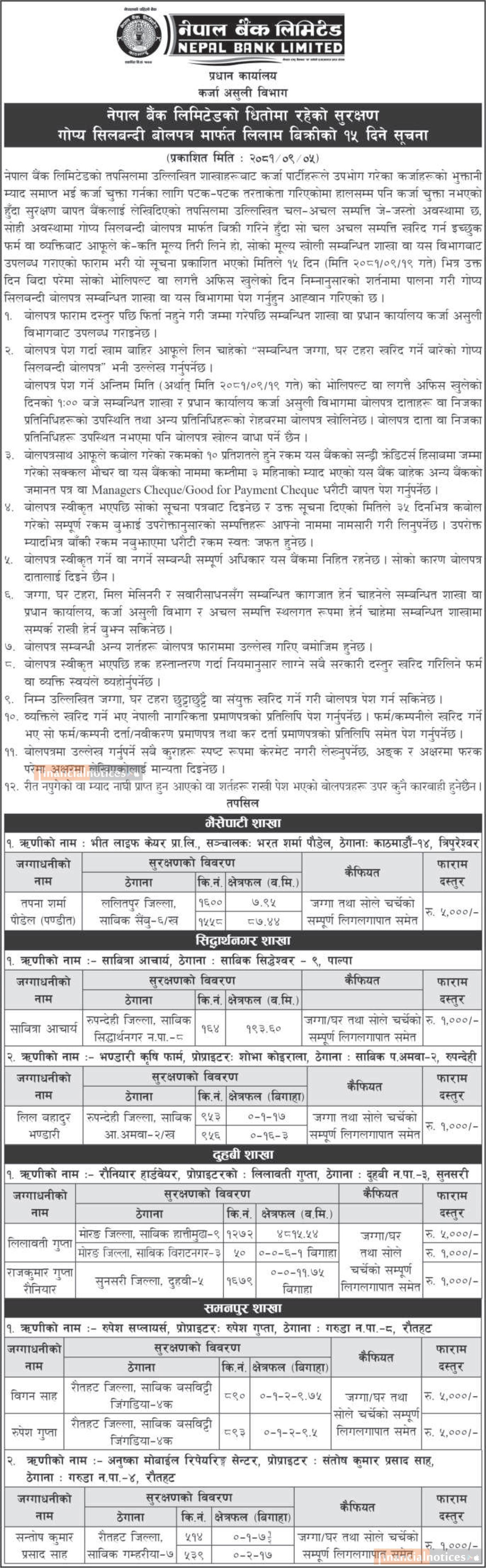 धितोमा रहेको सुरक्षण गोप्य शिलबन्दी बोलपत्र मार्फत् लिलाम बिक्री सम्बन्धी सूचना