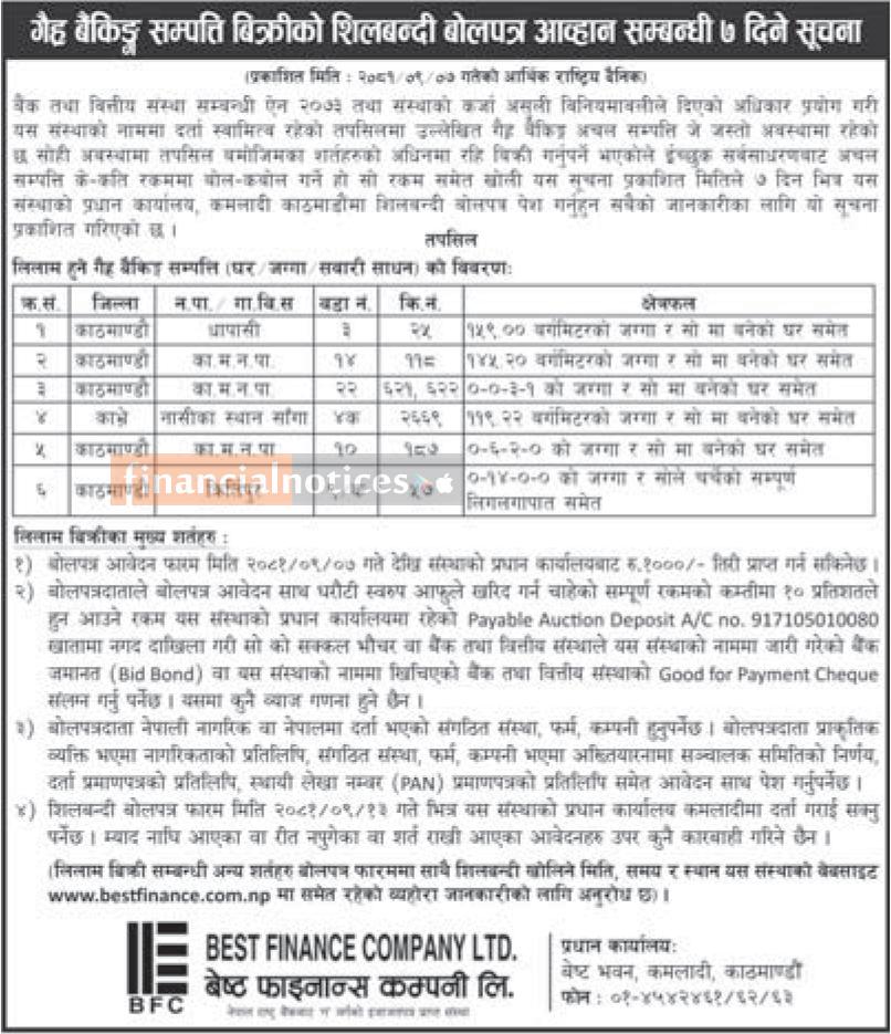 गैह्र बैंकिङ्ग सम्पत्ति बिक्रीको शिलबन्दी बोलपत्र आव्हान सम्बन्धी सूचना