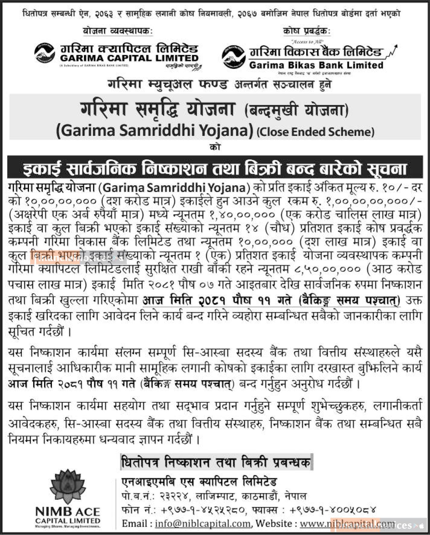 Published by Garima Captial Limited on 2081-9-11
