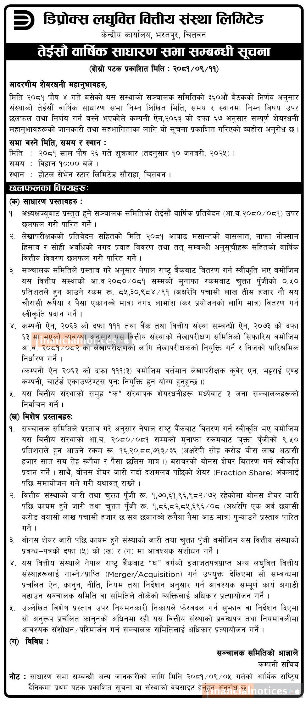 तेइसौँ वार्षिक साधारण सभा सम्बन्धी सूचना