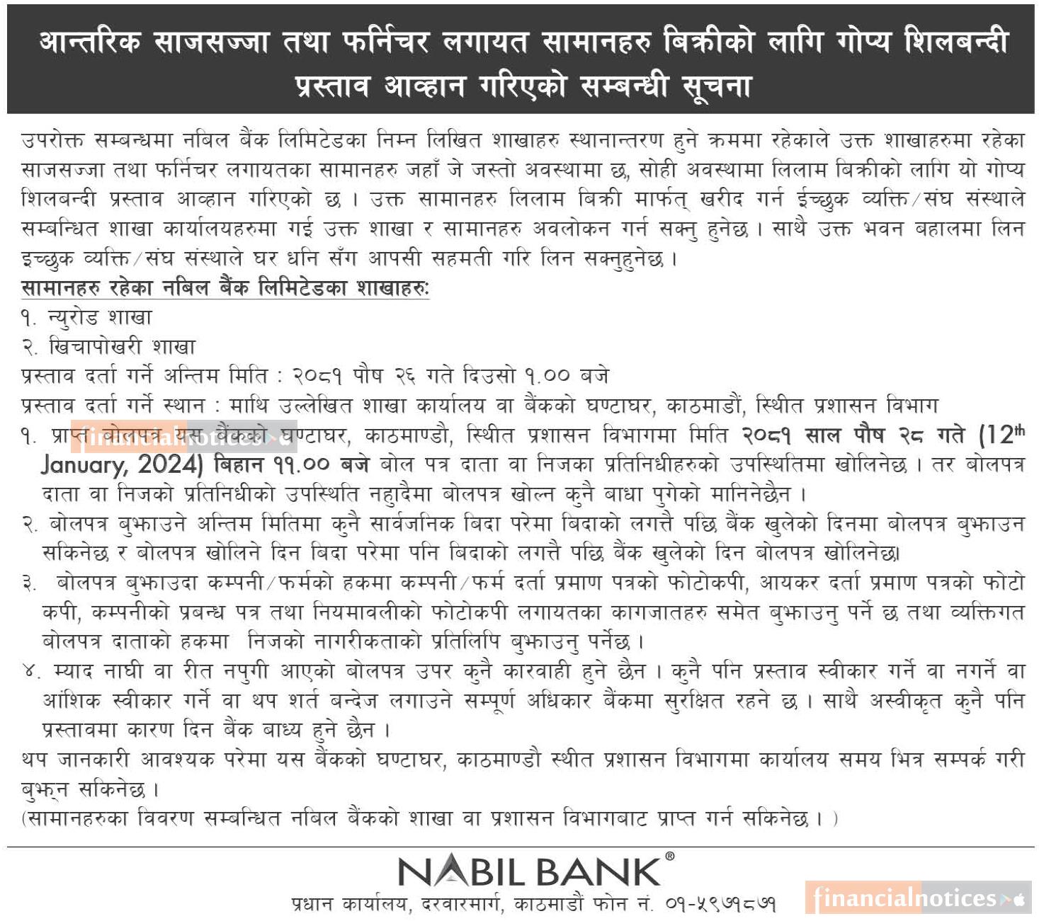 गोप्य शिलबन्दी प्रस्ताव आव्हान गरिएको सम्बन्धी सूचना
