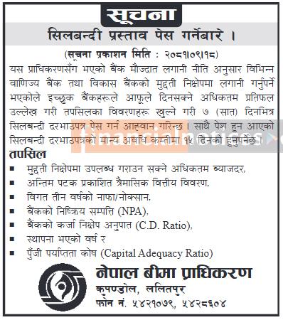 शिलबन्दी प्रस्ताव पेश गर्ने बारे सूचना