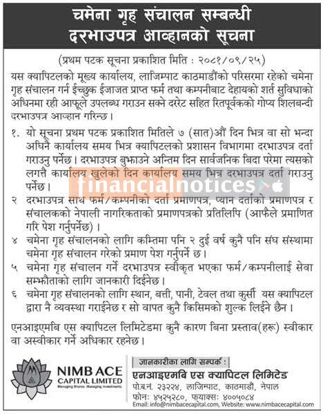 चमेना गृह संचालन सम्बन्धी दरभाउपत्र आव्हान सम्बन्धी सूचना