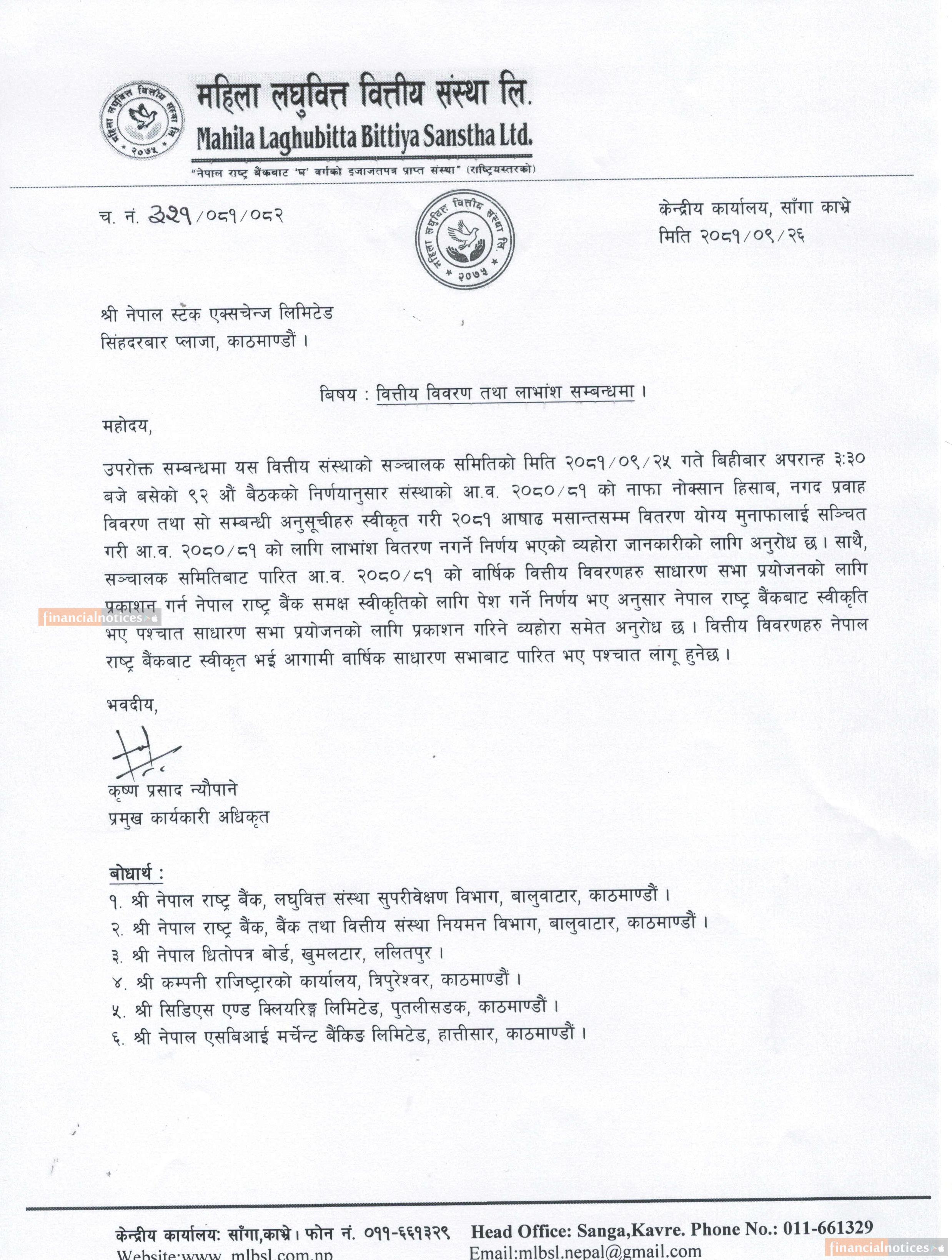 महिला लघुवित्तले लाभांश वितरण नगर्ने सम्बन्धी सूचना