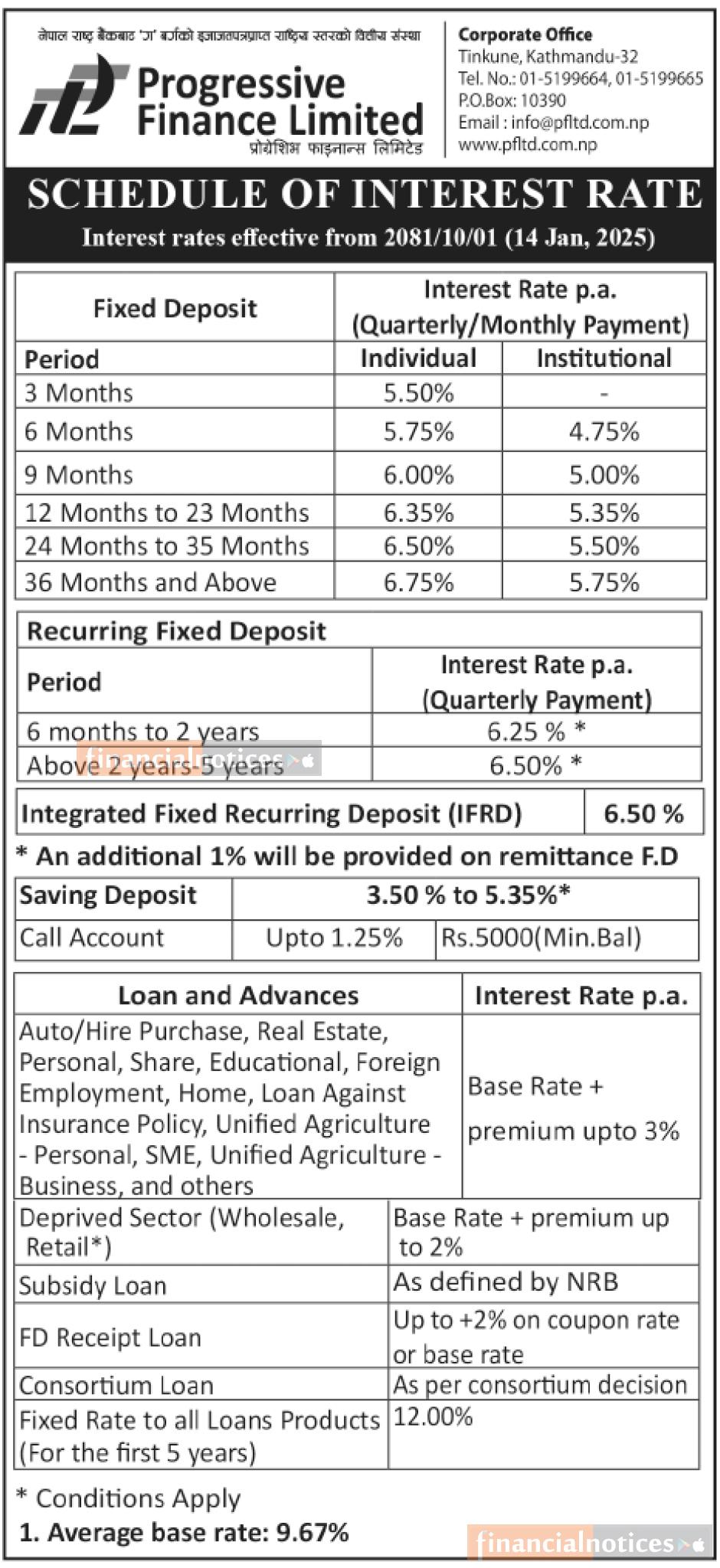 प्रोग्रशिभ फाइनान्सको माघदेखि नयाँ ब्याजदर लागु हुने सम्बन्धी सूचना