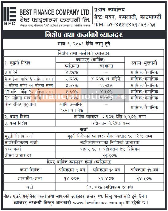 निक्षेप तथा कर्जाको ब्याजदर परिवर्तन सम्बन्धी सूचना