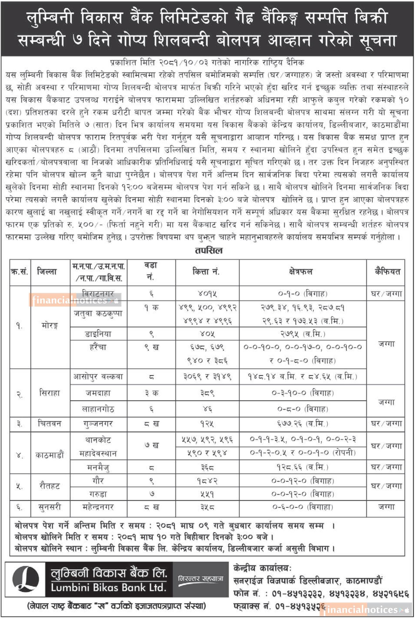 गैह्र बैंकिङ्ग सम्पत्ति बिक्री सम्बन्धी ७ दिने गोप्य शिलबन्दी बोलपत्र आव्हानको सूचना