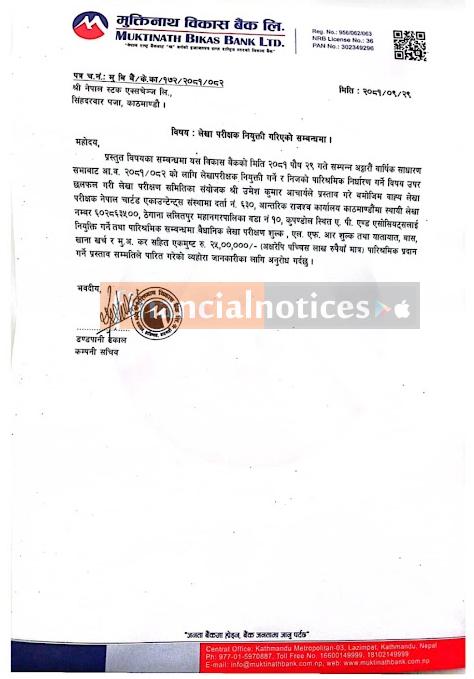 लेखा परिक्षक नियुक्ति सम्बन्धी सूचना
